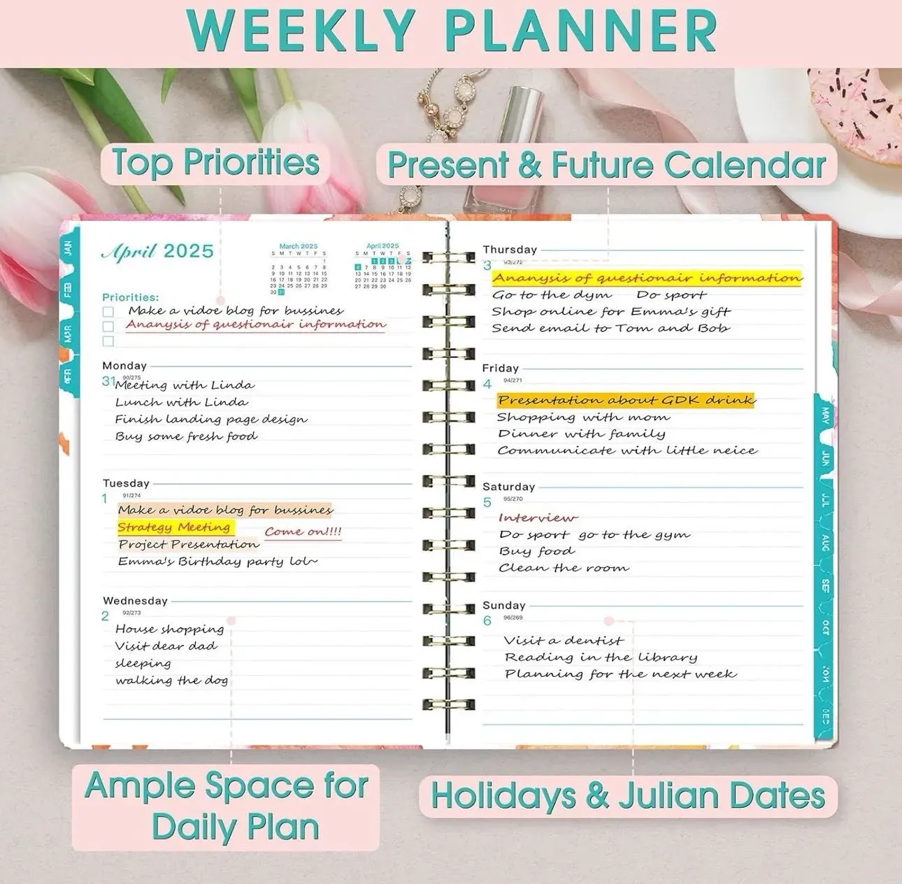 Agenda YMUMUDA 2025: esta agenda diaria semanal mensual 2025 de tapa dura (8.4 x 6 pulgadas) cuenta con 12 meses desde enero de 2025 a diciembre de 2025 con páginas de planificación mensual semanal, la agenda ofrece otras páginas adicionales para ayudarte a organizar bien durante todo el año y aumen...