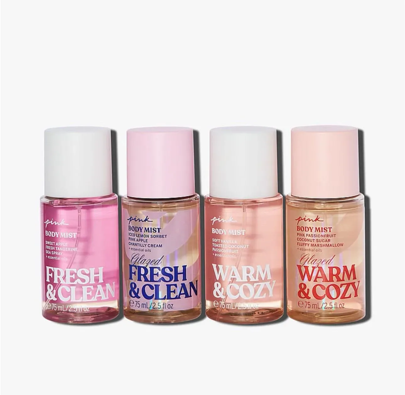 Spritz en un poco de magia navideña con cuatro nieblas corporales clásicas y sus giros navideños glaseados con azúcar.