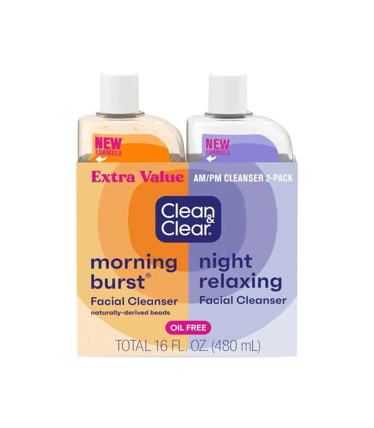Juego de limpieza facial diario por la mañana y por la noche: una botella de 8 fl oz de Clean & Clear Day y una botella de 8 fl oz de Clean & Clear Night Face Wash; ambos sin aceite y no comedogénicos para limpiar suavemente sin resecar demasiado la piel tanto por la mañana como por la noche