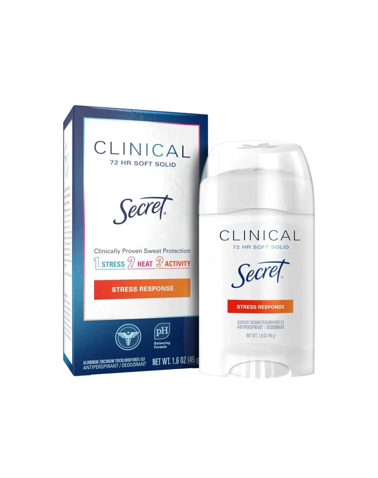El antitranspirante y desodorante Secret Clinical Strength para mujeres es una protección clínicamente probada para 3 tipos de sudor; 1) sudor por estrés, 2) sudor por calor y 3) sudor por actividad.